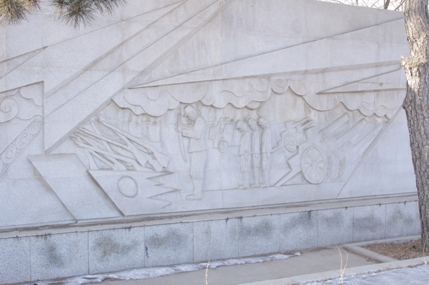 記念碑前広場東側の彫刻。