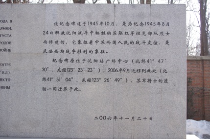 「この記念碑は1945年10月の建立で、瀋陽の解放戦争中に死亡した